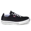 Een zwarte S3 goedgekeurde werksneaker speciaal ontworpen voor vrouwen. Het lage model heeft de uitstraling van een sneaker. De dikke zool en aluminium neus maken de schoen echter geschikt voor beroepsmatig gebruik.